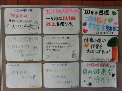 玄関に、生徒会各種委員会からの目標が張り出されました。
