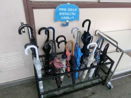 毎日活躍する傘。整然と並んでいます。