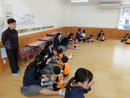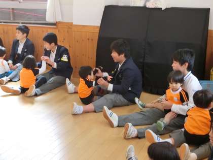 園児さんとペアになり、ほがらかな時間です。
