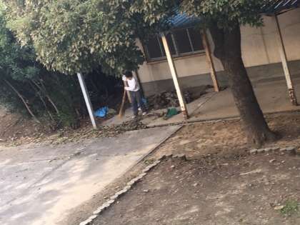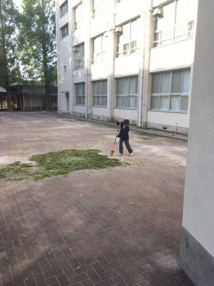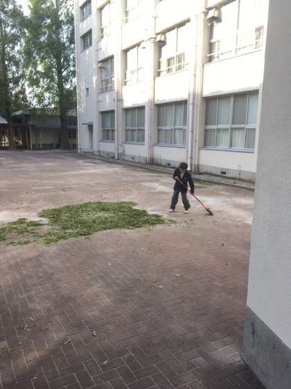 とにかく一生懸命、中庭の落葉を掃除してくれています。