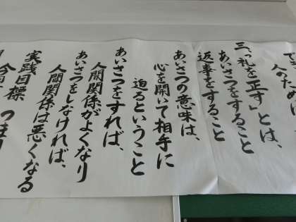 気持ちの良いあいさつ、返事に心がけましょう。