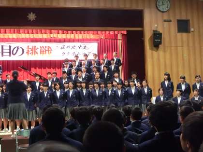 午前のプログラム最後は、3年全員による課題曲の披露でした。