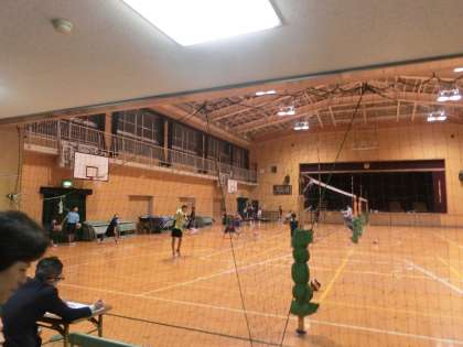 夜間、小学校の体育館では、バレーボールチームの練習が盛んに行われていました。