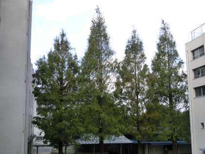 まだまだ風が強く、中庭のメタセコイヤの木が、大きく左右にしなっています。