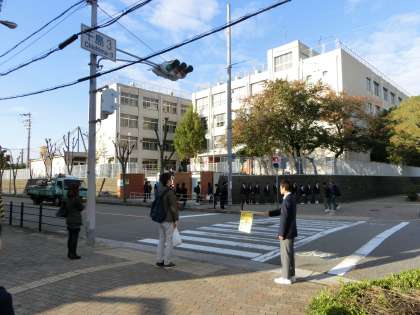 寒い中、生徒会のあいさつ運動、交通安全指導も展開されています。