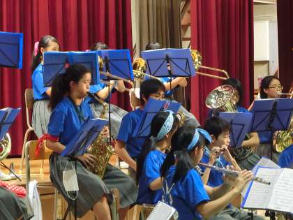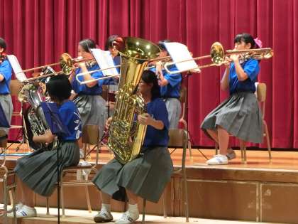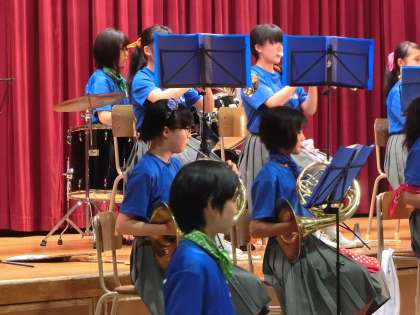 部員たちは、揃いのスカイブルーTにバンダナで登場しました。