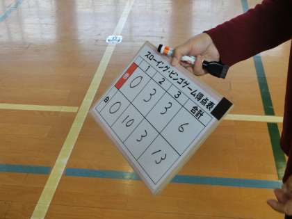 赤白の2チームで対戦し、ビンゴを取れば、第一ゲームは終了。