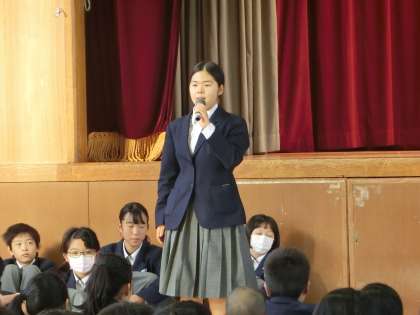先生方だけでなく、功績のあった児童生徒も表彰され、大正中央中学校の管理作業員さんも、学校環境の整備で輝きました。