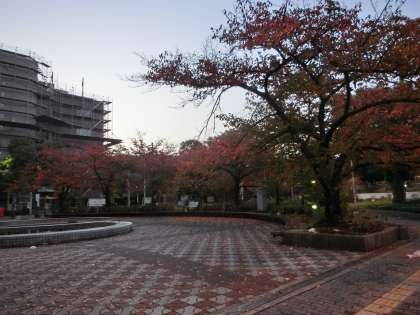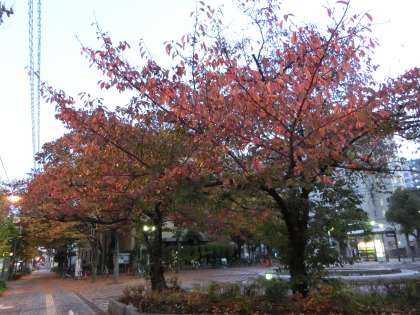大正区役所前のロータリー。数多くの桜の紅葉が見頃です。