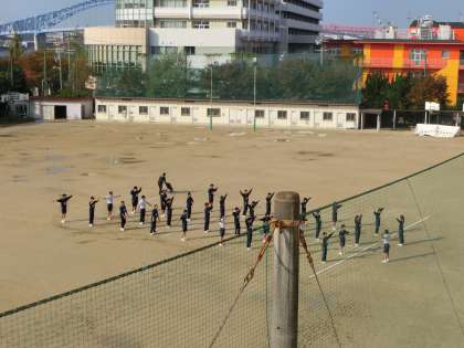お天気のもと、3年体育の授業がグラウンドで行われています。