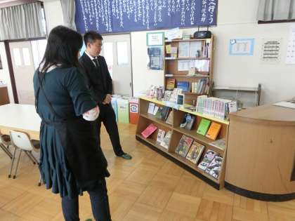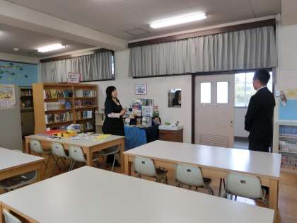 教育委員会の先生には、本校自慢の図書室を見学していただきました。