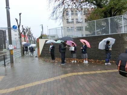 初日はあいにくの雨。しかし、頑張って募金コールをしてくれました。