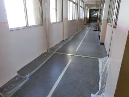 管理作業員さんの手で、廊下の壁面が美しく変身しています。