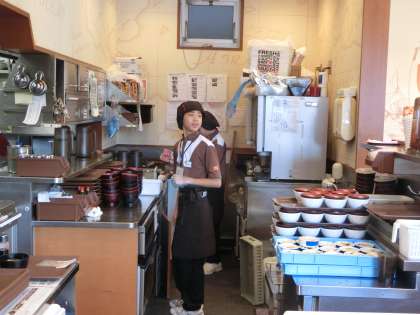 ユニフォーム姿がバッチリ!「すき家」です。