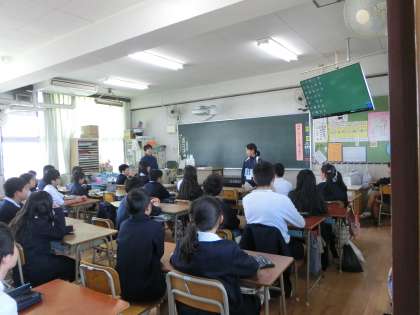 教室の授業では、自己紹介が。少し恥ずかしそうでした。