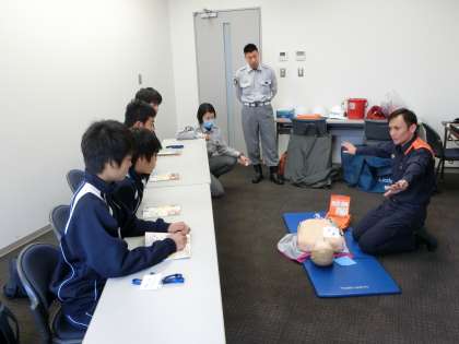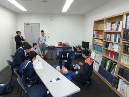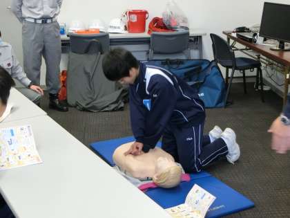 AEDの使用方法や、人工呼吸・胸骨圧迫などていねいに指導いただきました。