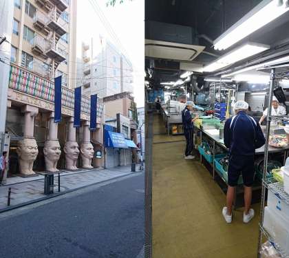 エントランスにあるモニュメントが印象的な「道頓堀ホテル」さん