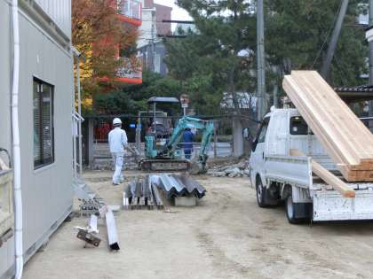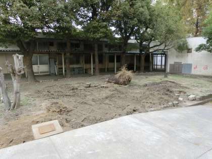 中庭横の樹木も、資材置き場として、伐採されていきます。