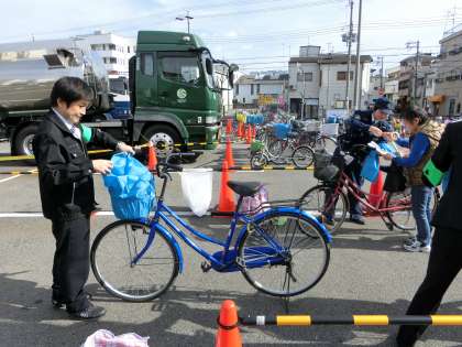 駐輪場では、大正警察からの「ひったくり防止キャンペーン」。