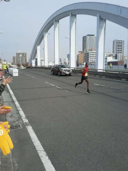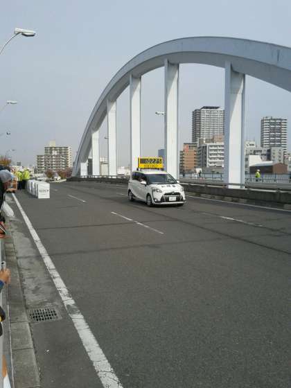 先頭ランナーが、大正橋を颯爽と通過して行きます。