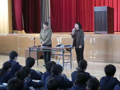 これまで本校に対して、保護者として、PTA役員として、そして地域保護司として携わっていただいている、北恩加島地域の山脇様、小森様にご講演をいただきました。