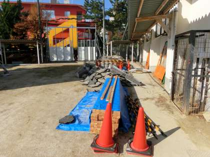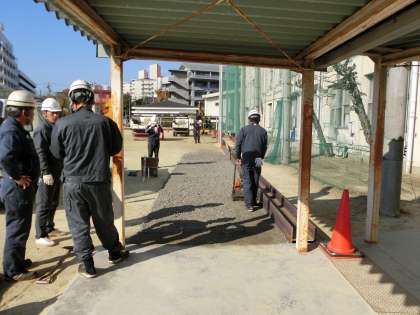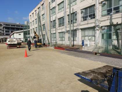 プール建て替え工事に伴い、グラウンドの端に、歩道が作られようとしています。