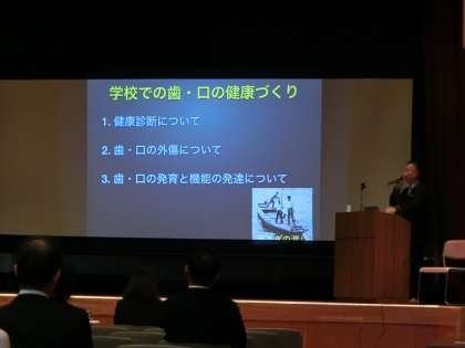 講演では、歯科医の永田先生から、「学校での歯・口の健康づくり」と言うテーマで、三段階のスクリーニング、歯の質を強化するなど、適切な保健指導についてお話を伺いました。