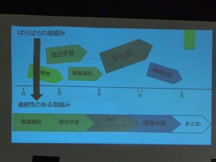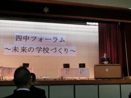 フォーラムの第二部では、体育館を会場に、四中の改革取り組みが発表されました。