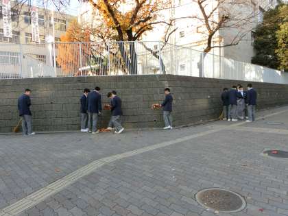 今朝はラグビー部が落ち葉の掃除を、ソフトボール部が階段の掃除をキレイにしてくれました。感謝!
