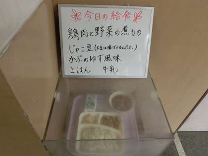 本日のメニューは「鶏肉と野菜の煮物」「かぶらのゆず風味」そして「じゃこと大豆の揚げ物」。