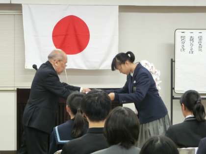 本校からは、3年の美馬さんが、港納税貯蓄組合連合会の会長賞に輝き、表彰を受けました。