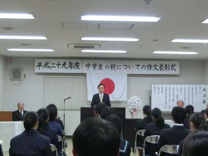 本日、港税務署において、港区・大正区の中学生「税の作文」表彰式が行われました。