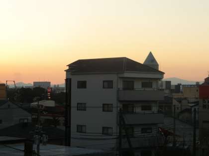 朝焼けに、金剛山・二上山が映えています。