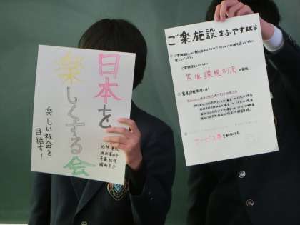 先日行われた衆議院選挙から、興味関心を高めるため、グループで政党を立ち上げ、マニフェストを考案。本日の発表会となりました。