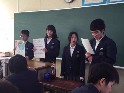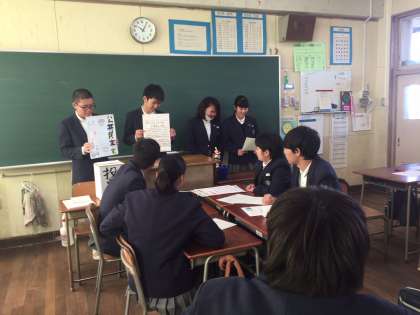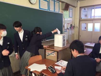 投票箱に政党名を書き込んだ投票用紙を入れて