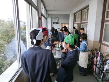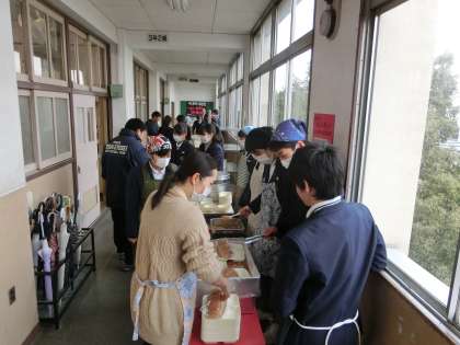担任の先生方が、焼きプリンを上手く分けておられました。
