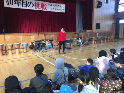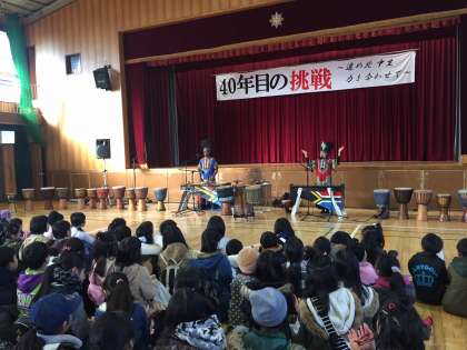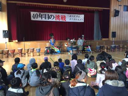 太鼓ジェンベを叩いていき、一体感が高まりました!