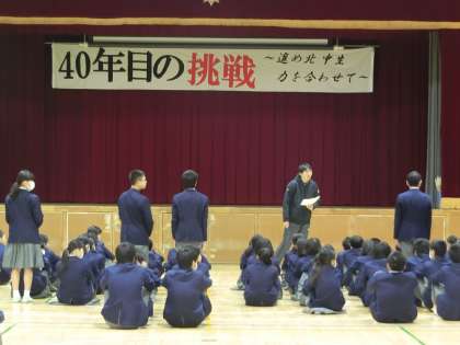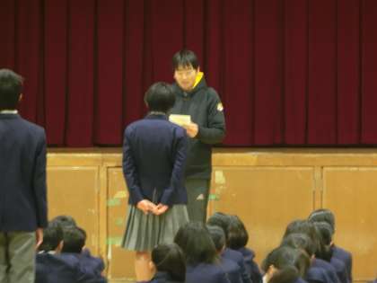 今朝は、国語の「文法力大会」の表彰が行われました。