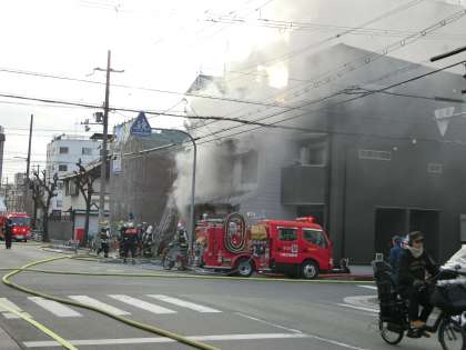 昨日の朝、大正区小林地域で火災が発生し、サイレンを鳴らした消防自動車が集結しました。
