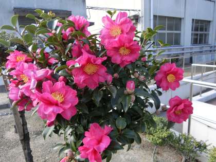 椿が映える学校