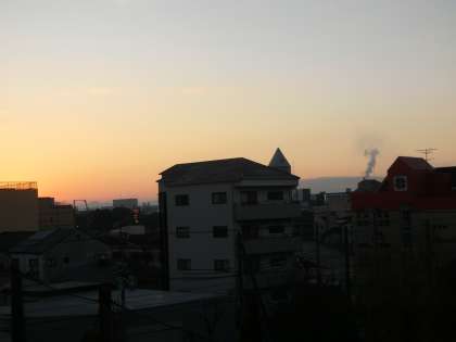 しかし、空は澄み渡り、朝焼けに二上山が浮かんでいます。