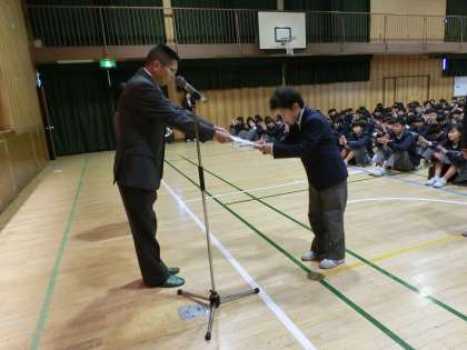 1・2年は、確実に宿題をこなすとともに、部活動に燃え、家庭での役割も果たしてほしいと思います。万引きや喫煙など、犯罪や軽はずみな行動は絶対に避けてください。1月すぐにチャレンジテストもあるので、準備をお願いします。