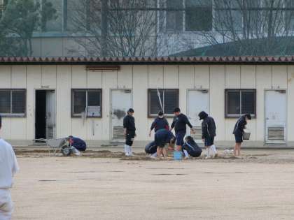 陽は射すものの、冷たい風が吹き抜けるグラウンド。