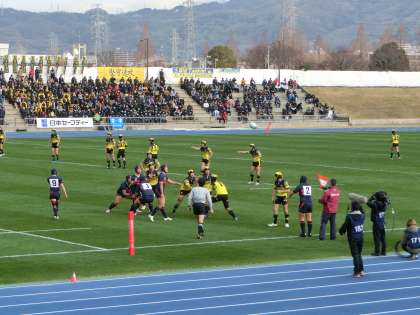 開始早々の激走トライに、メインスタンド、バックスタンドも大いに沸きます!