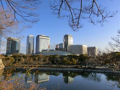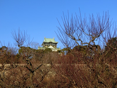 梅林から見た、輝く大阪城。