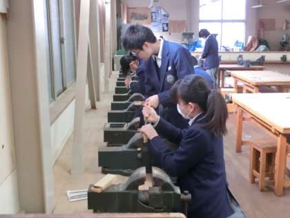 それぞれが工具を使いながら、オリジナル作品を仕上げています。