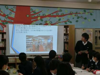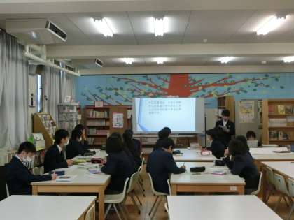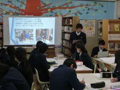 職場体験学習のまとめである、事業所別プレゼンテーション発表会に向けて、その練習が行われています。