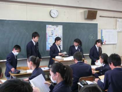後半は、明日の「40年のあゆみ」学級配布を前に、代表生徒によるプレゼンテーションを行ってもらいました。