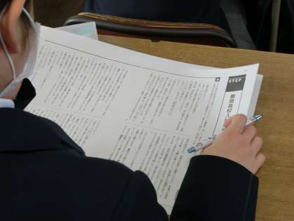 国語の長文読解の授業。