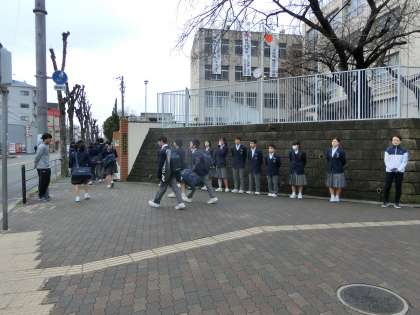 大変寒い中ですが、生徒会のあいさつ運動・交通安全指導が行われています。